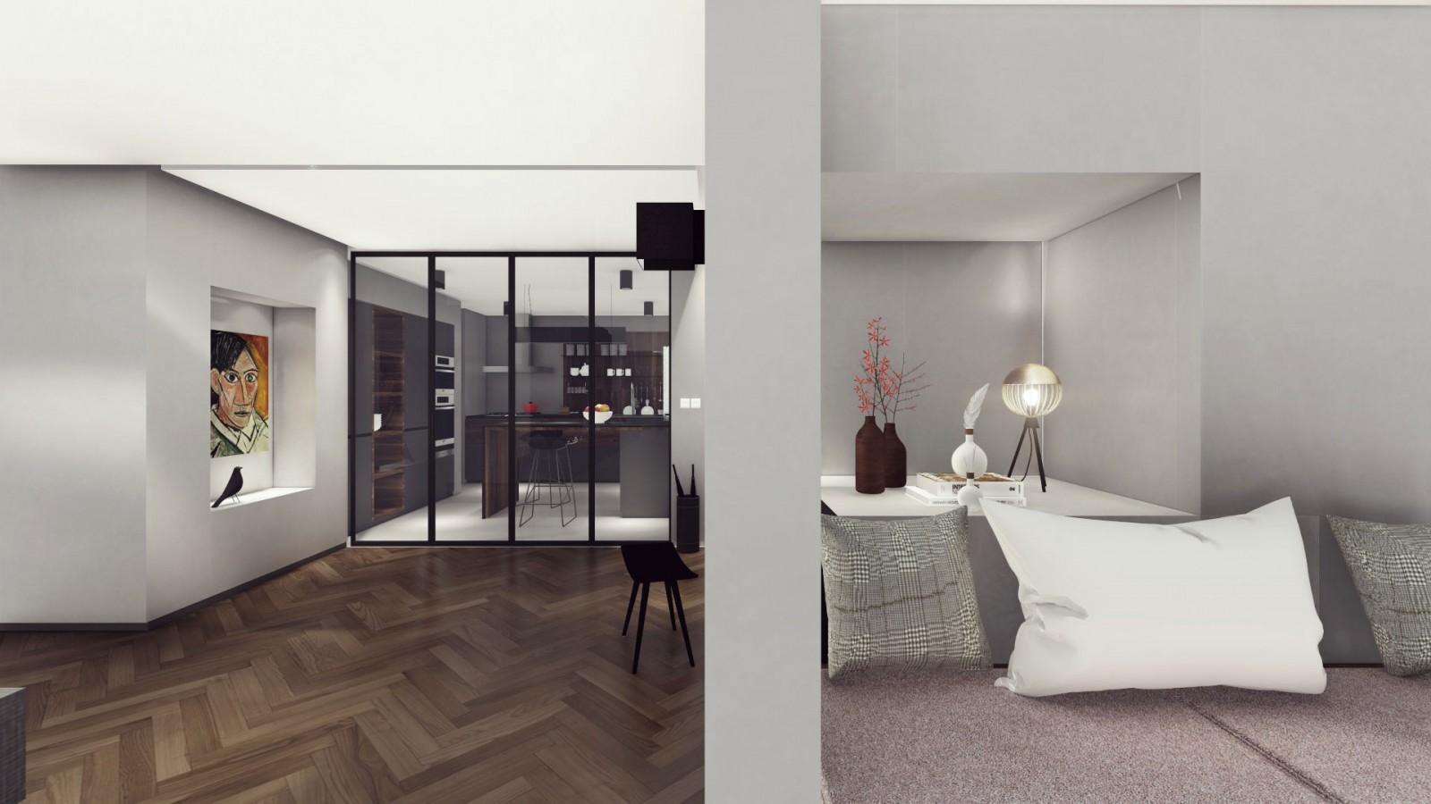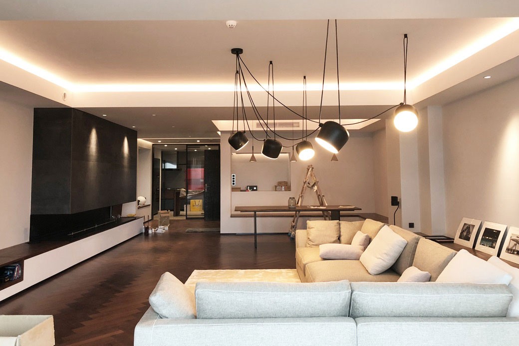 Interior design for a high-end apartment in Dongzhimen. The project was to optimize the use of space to meet the needs of a young family. The materials and the light both played important roles in achieving the objective. The rearranged layout was function-oriented in order to fit the family’s daily routine while maintaining a contemporary urban look.