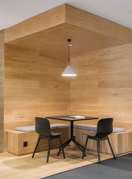 One side of the staircase was turned into a bookcase, in order to create a visual landmark within the store, visible from the street outside. The open bar and flexible events area on the second floor enhanced the functionality of the space. The north west corner, most exposed to natural light, was turned into a modern wood-panelled “writers’ corner”.